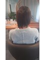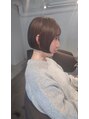 顎上のミニボブです。首が長くみえてすっきりみえます。耳後ろの厚みをとってタイトに頭が小さくみえるボブにしています。白髪ぼかしカラーも可能です。