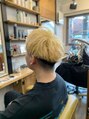 派手髪が得意な八王子美容室トルチェのやなです!今回はメンズショートの抜きっぱなしカラーです♪ブリーチでしっかり抜いて元々の黄色味を活かして少し白っぽく仕上げました!紫シャンプーで維持も簡単にできます♪