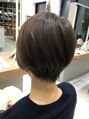 カットは襟足をスッキリさせたショートスタイルカラーは明るめに染めたいので白髪染めの薬剤は使わずに染めました。色落ちした時も自然に落ちてくれます^ ^