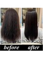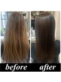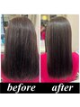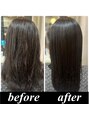 従来の縮毛矯正とは全く異なり髪を弱酸性のままストレートに髪質改善する最新の縮毛矯正です。独自の研究によるサプリメントケアで髪の間充物質を補いながらかけるため固くならず柔らかいシルクのような手触りになります☆