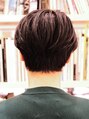 頭の形や輪郭、首のラインが綺麗に見えるセンターパートハンサムショート女性らしい丸みは残しつつ毛先に動きをつけ首筋が綺麗に見えるよう襟足は首にそうように切ります。カジュアルな雰囲気が出るようにセンターパートにカットしました。