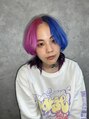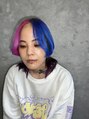 ダブルカラーの派手髪スタイル!ビビットなカラーを大胆にセンターで分けて一際目立つスタイルになっています。町の美容室でも今は色々と出来ることが増えていますよ!ケアブリーチ/リタッチ/パーマ/酸性ストレート/グラデーション/カット/ ショートカット
