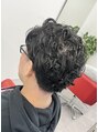 キワを刈り上げでスッキリと刈り上げて、トップにかけて少し長さを残して、強めのパーマを細かめにかけました!スタイリングも濡れてる髪にジェルやワックスをつければ、すぐにできるスタイル
