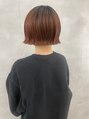 前にやってた毛先のブリーを生かして、オレンジカラーに!!深みあるバレンシアオレンジ。ちょっと春気分を先取り(^^)襟足ギリギリのミニボブで外ハネにしてるのがポイント♪