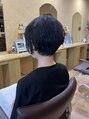 癖を活かしたショートは、骨格と癖の方向を考慮してカット。ウエットに仕上がるオーガニックバームで仕上げて自然に◎