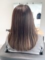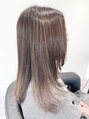 お顔周りにレイヤーが入ったミディアムスタイル。ハイライトを入れた後にベージュでオンカラーした柔らかいスタイル◎
