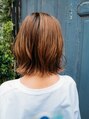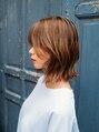 肩にちょうどつかないくらいのミディアムレングスのスタイルです!少しくびれのあるシルエットなので重たくなりすぎず全体にスッキリとした印象になります!バングはシースルーなのでさらにナチュラル感が増しヘルシーに!【ボブ/ハイライト/インナーカラー】