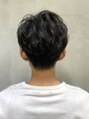 清潔感ある作りすぎない大人男子の髪型。サイドにソフト2ブロックを含んだショートレイヤーベースにバングとトップはザクザクなデザインにして毛先は柔らかく動くように長短つける。パーマはトップのみツイストパーマをかけて、束感、躍動感を簡単に演出。
