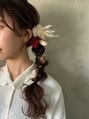 ゆるふわサイド編み下ろしに卒業式の袴に合わせて飾りも