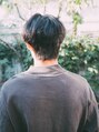 ナチュラルなウェーブがかかったセンターパートスタイルです。バックは刈り上げはせずに、ハサミで短くすることで柔らかい印象になります。表面は長めのレイヤーが入ってるので動きは出しつつまとまりやすいようにカットしてます。