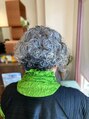 仕上げはドライなしをご希望なので、ウェットな状態で。乾くともう少しふわっとします。お手入れは何もしたくない、スタイリングもしたくないということなので、洗いっぱなしで雰囲気のあるスタイルに決まる、くるくるパーマに。