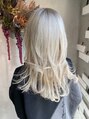 ケアブリーチを使って2ブリーチしてホワイトベージュをオン。色落ちも綺麗です。