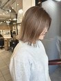 外ハネ/ミディアムボブ/極細ハイライト/ベージュ系/ホットペッパービューティー