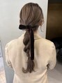 結婚式参列ヘアセット編み下ろしベロアリボンベージュカラー中西/ホットペッパービューティー