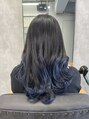 裾だけブリーチなデザインカラー♪ベースは透け感抜群ブルーブラック、毛先はしっかりブルーで同系色コントラストカラーです*^^*モノトーンな感じやがっつり寒色はブルベさんにぴったりカラーで、このデザインの場合特にウィンターさんが最適です☆