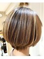 ショートボブのオーダーで特に首周りをスッキリめにカットしてます。トップに少しボリュームを出したいのでレイヤーも少しいれてます。ハイライトも最初から入っていたのでより軽く見えるようになってます。