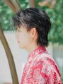 ショートウルフは10代20代に人気の髪型です。襟足が長めで後ろが重たい印象な為、前髪をわけ、耳を出すことで軽い印象にしバランスをとっています。黒髪にすることで、チャラくなりすぎない印象に仕上げています。
