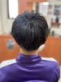 ぐるっとツーブロックを入れてマッシュベースにカット、ソフトパーマで緩めの動きが出るように仕上げております!
