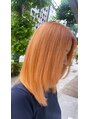 オレンジベージュ/オレンジカラー/ハイトーンロブ/切りっぱなしボブ/レイヤーカット/レイヤースタイル/オレンジブラウン/横浜美容室/デザインカラー/ミルクティーカラー/ロブ/暖色系カラー/顔周りレイヤー/くびれヘア/orangehair/orangehair