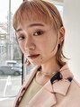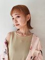 短めの前髪と顔まわりにレイヤーが入った切りっぱなしボブカラーも明るめのオレンジ系で春っぽい明るさとスタイリングも外にはねさせて軽いイメージに