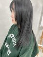 透け感のあるブラックカラーで艶やかなロングヘア。顔まわりにはレイヤーを入れてラフな動き出るようにカットしてます。黒髪だけど、重く見えず艶髪に憧れる方にはおすすめカラーです。