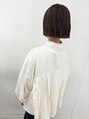 襟足ぎりぎりの重めのぱつっとボブ。ストレートアイロンでまっすぐにして、毛先をやや外はねぎみに。ボリュームを抑えるようにバームをたっぷりつけてます