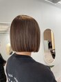 ぱつっと切りっぱなしボブです!あご下でカットしてアイロンを通して艶感を出しています!