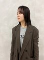 肩につくくらいのぱつっとロブ前髪は長め 顔まわりにデザインを少しいれて重すぎないスタイルに