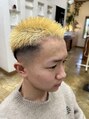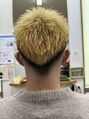 坊主が伸びた状態でのご来店だったので、Vの字にフェードカットしておしゃれにした後、今流行りのベリーショートにブリーチをオンしました。