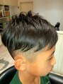 親の周りは短くと、本人の上は長め…を融合させた、ツーブロックスタイル。