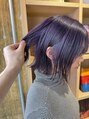 やや深めのバイオレットカラー。ケアブリーチ1回で可能なカラーです。バイオレット系の色落ちは、他のカラーに比べて黄色くなりにくい落ち方です。