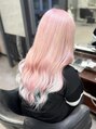 ブリーチリタッチをしてペールピンクに♪その後エクステ60枚をつけて長さをだしつつインナーには水色を♪