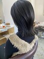 暗めグレージュカラー艶感と透明感のあるスタイルに!!切りっぱなしロブとの相性◎