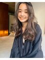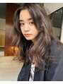 ベースの部分は重さを残して、顔まわりのみ軽さが出るようにレイヤーを入れたナチュラルでラフなスタイル。大きめのカールアイロンで巻く事でフワッとした質感になります。カラーはイルミナカラーで赤みをしっかり削ったフォギーベージュ。