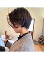 大人女子のハンサムショート襟足はすっきり短くし、サイドからフロントはパツっとしたカットラインで鼻下くらいに設定した王道のハンサムショートスタイルです。