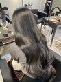 黒髪/グレーベージュ/レイヤーロング/前髪パーマ/艶髪/髪質改善