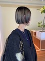 表面の毛先にブリーチカラーを入れてコントラストのあるデザインカラーに◎ぷつっとカットラインのボブとの相性も抜群です。