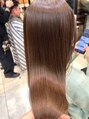 クセが気になるけど、透明感があるカラーがしたい人に向け「ストレートヘア+透明感カラー」を手に入れたい方にオススメです。縮毛矯正ではなく、ケラチンタンパクの効果でツヤツヤでふわっと自然なストレートヘアになれる薬剤と技術です。