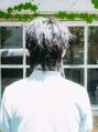 今流行りの襟足ありセンターパートスタイル。襟足をあえて刈り上げずに残して重さを出して、前髪をセンターに分けておでこを出してあげることで軽さを出し、バランスのとれたヘアスタイルです。そして髪に動きを出すためにレイヤーを入れています。