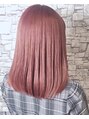 ブリーチ1回、サクラピンクベージュ。初カラーでブリーチ1回で桜ピンクカラーに!(髪質によりブリーチ回数は異なります。)ブリーチ1回では黄色味は抜けきらないので、ほんのりと紫味を入れたピンクベージュの配合。ペールトーンなどはもう1回要ブリーチ