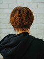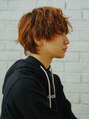ツーブロックで耳半分くらい隠れるマッシュにカットしえりあしを少し長めに残したスタイル。カラーは少し明るめのオレンジブラウンに染めました。セットが苦手な方はパーマも一緒にしてあげると毎日にセットが楽チンです