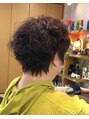 ベリーショートのパーマデザインスタイル。ウェーブ強めながらも丸くなってしまわない様にメリハリを効かせて、ランダムにパーマをかけてあります。白髪ぼかしイルミナと同日施術していますのでトリートメント処理をしっかりと。パーマに合わせ元気な色味に♪