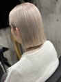 ケアブリーチでダメージ軽減させて艶を残したままホワイトベージュの仕上がりにしました♪【気に入ったスタイルは「ブックマークする」ボタンを押して、ご来店時ご提示ください】大人ボブ,センターパート,グラデーションカラー,小顔,マッシュ