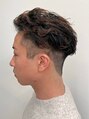 ツーブロックと刈り上げで耳まわりをすっきりさせ、トップはワイルドにかき上げスタイルです◎