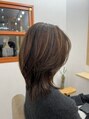 ミディアムウルフスタイルにハイライトをプラス。レイヤースタイルにハイライトの相性は抜群です♪ベースカラーはメテオで施術しているので、ダメージを抑えてツヤ感もUP。