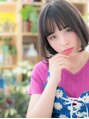 【スタイルは★ブックマーク★が便利】透け感シースルーバングでガーリーな雰囲気に。前下がりで輪郭カバーして小顔に仕上げたナチュラルボブ。ツヤカラーとレイヤーで動きを出し、重めスタイルに軽さとやわらかさをプラス。(メイク担当:北浦和店 棟方)