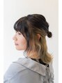 派手目なカラーでも前髪があるこで優しい印象になりますバレイヤージュにしてシルバー系色味を入れることで黄ばみを飛ばして透明感のあるカラーにしましたコテで巻くことでさらに動きを出しました