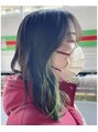 結んで隠せるくらいの幅のインナーカラー。グリーンで春らしく。