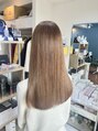 ハイトーンの王道であるベージュカラー。ケアブリーチを使用しダメージを抑えながら明度を上げています。ブリーチベースが整えば、今後はブリーチリタッチで繋げていくことができるので毛先にダメージを与えることなくハイトーンを楽しめます。