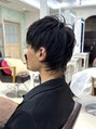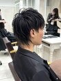 人気のウルフカット!トップは短くカットして動きをだします。襟足を長めに残すのが今の流行り!スライドカットでスタイリングの時に束感をでやすくしてあります。仕上げはグリースかワックスがお薦めです、お気軽にご相談下さい。